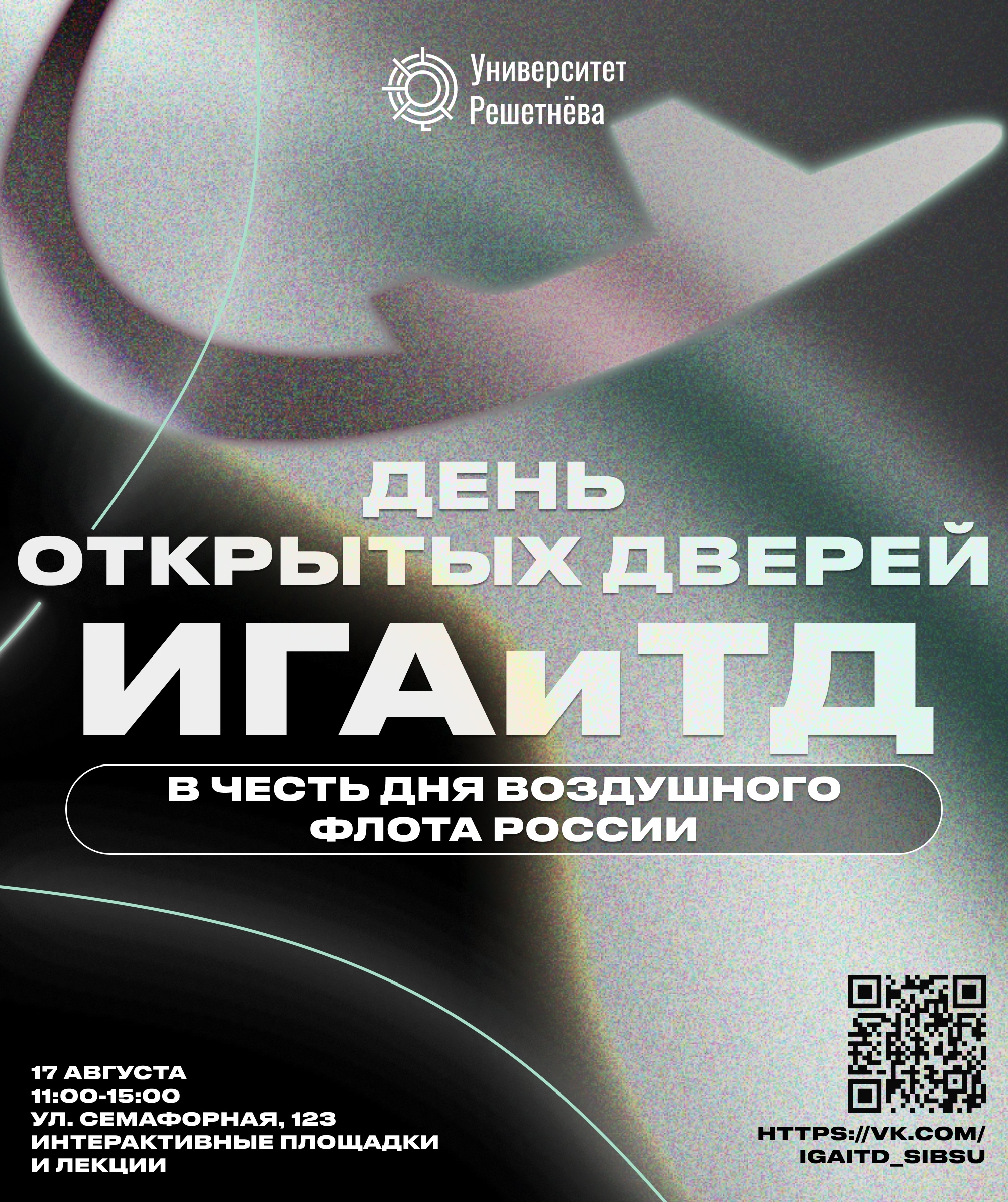 В этом году, по инициативе студентов и при поддержке наших партнеров — компаний КрасАвиа, Аэрофлот Техникс и АэроГео — институт проводит День открытых дверей ИГАиТД, который состоится 17 августа 2025 г. по адресу г. Красноярск, ул. Семафорная, 123.