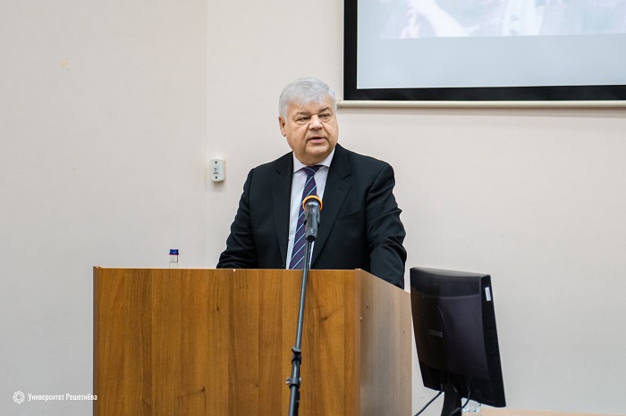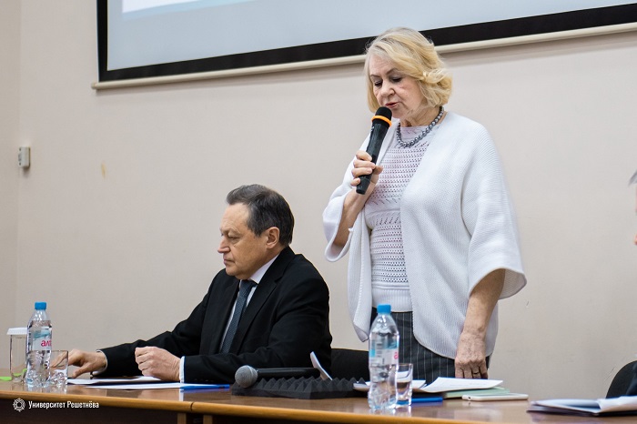 С призывом поддержать выступили также руководитель Студенческого технологического инкубатора Кристина Черник, начальник управления информационно-коммуникационных образовательных технологий, к.техн.н., профессор кафедры прикладной математики Татьяна Иванилова, директор Института космических технологий ФИЦ КНЦ СО РАН Николай Тестоедов, образно сравнивший университет с большим кораблем.