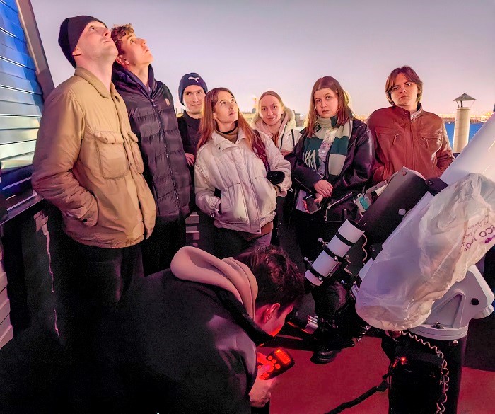 27 марта 2026 г. погода, наконец, позволила провести телескопические наблюдения Луны и планет в учебной обсерватории Университета Решетнёва. Участниками наблюдений стали студенты группы БИГ22-01