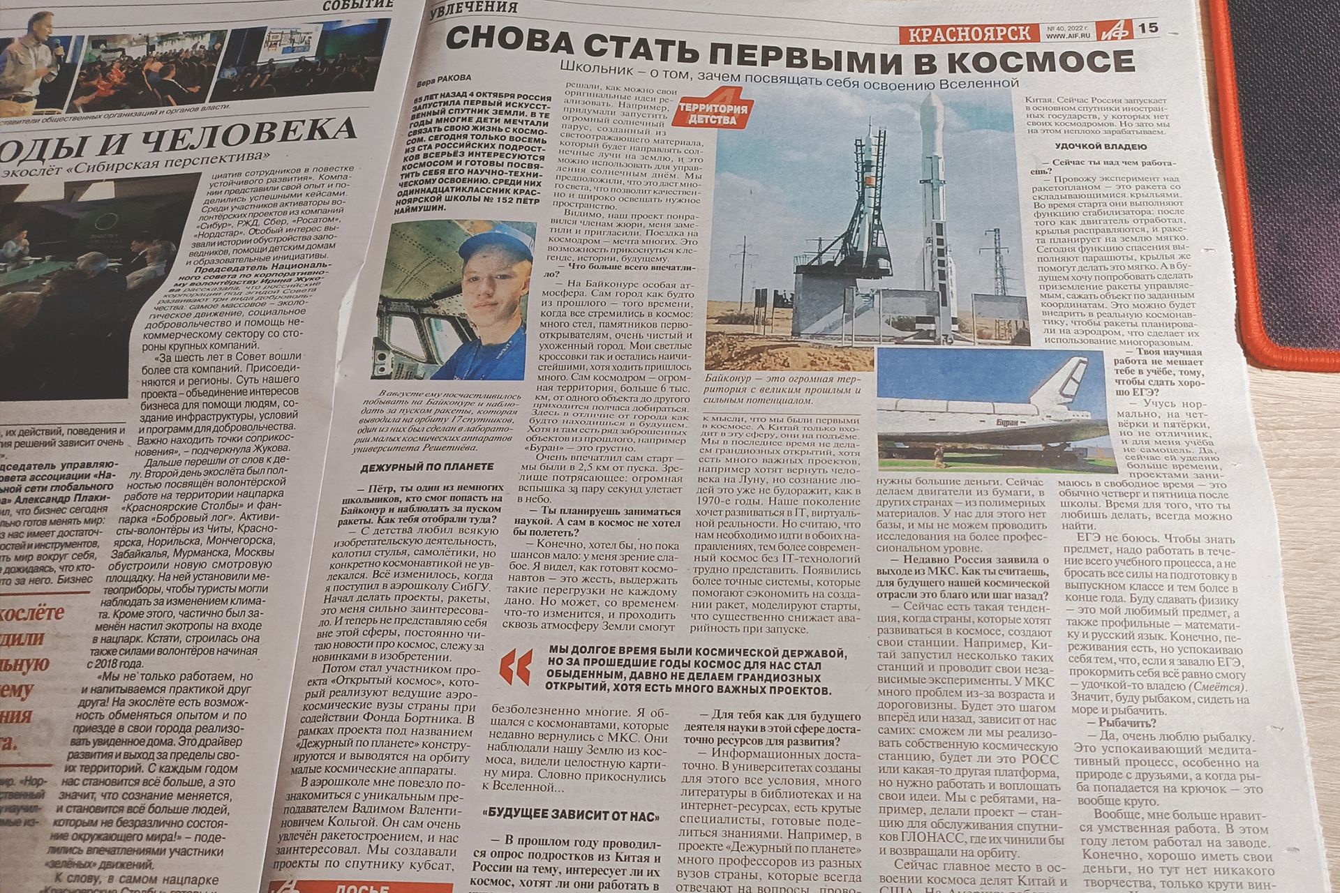 Снова стать первыми. Школьник, участник проекта «Открытый космос» – о том, зачем посвящать cебя освоению Космоса, - в интервью еженедельнику «Аргументы и факты»