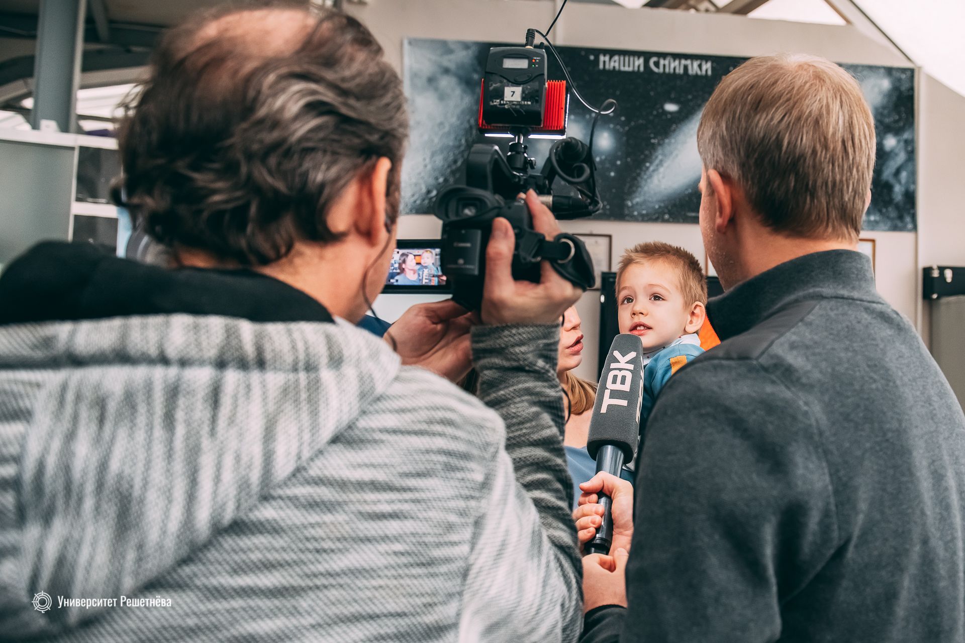 Маленькая экскурсия по обсерватории и студенческому центру управления полетами, где можно было на экране мониторов проследить трафики запущенного университетом в недавнем августе спутника ReshUCube-1. И пусть название космического аппарата Леня не запомнил, зато ему дали посмотреть в настоящий телескоп, а это именно то, что было заветной мечтой малыша и привело его в настоящую обсерваторию!